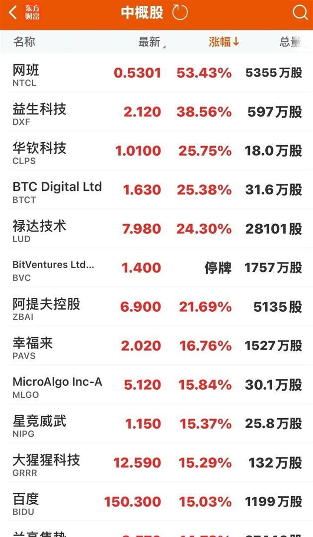 2026年全球资本市场迎来戏剧性开局,美股上演“冰火两重天”——科技巨头集体熄火,半导体与商业航天却逆势狂飙。 中概股以一场史诗级暴涨引爆市场:纳斯达克中国金龙指数单日狂拉4.38%,百度因芯片业务分拆上市暴涨15%国内前十的证券公司,阿里巴巴、网易等龙头股涨幅全线飘红。 这场狂欢背后,是全球资本用真金白银对中国资产的重新定价。